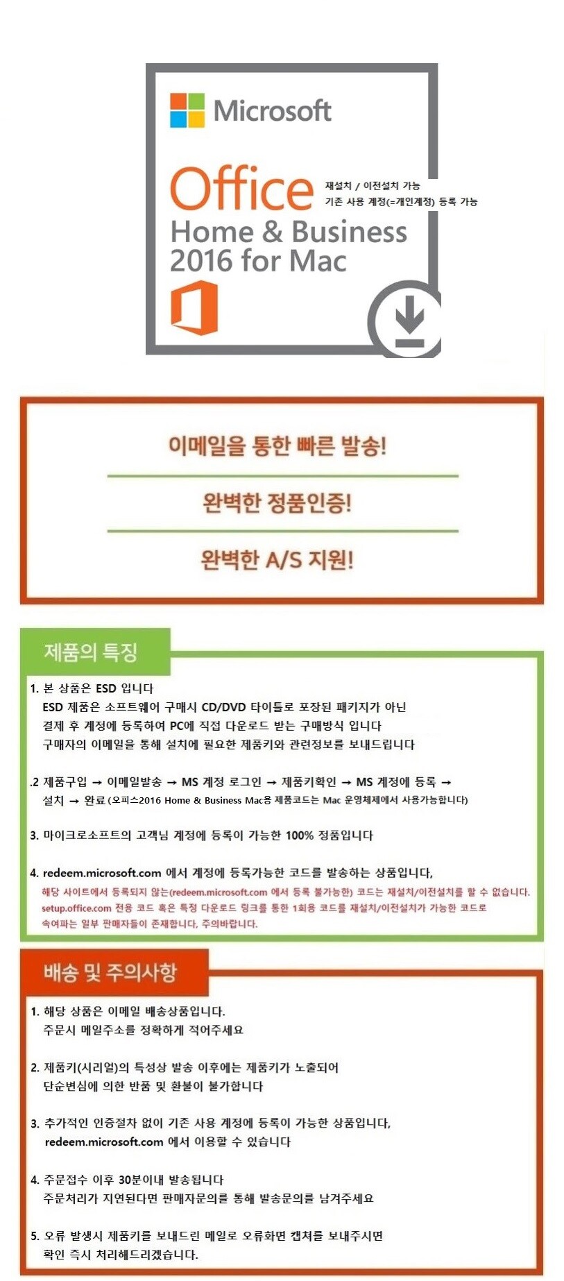 Office2016 Home&Business ESD (맥용, 포맷 재인증/이전인증 가능)
