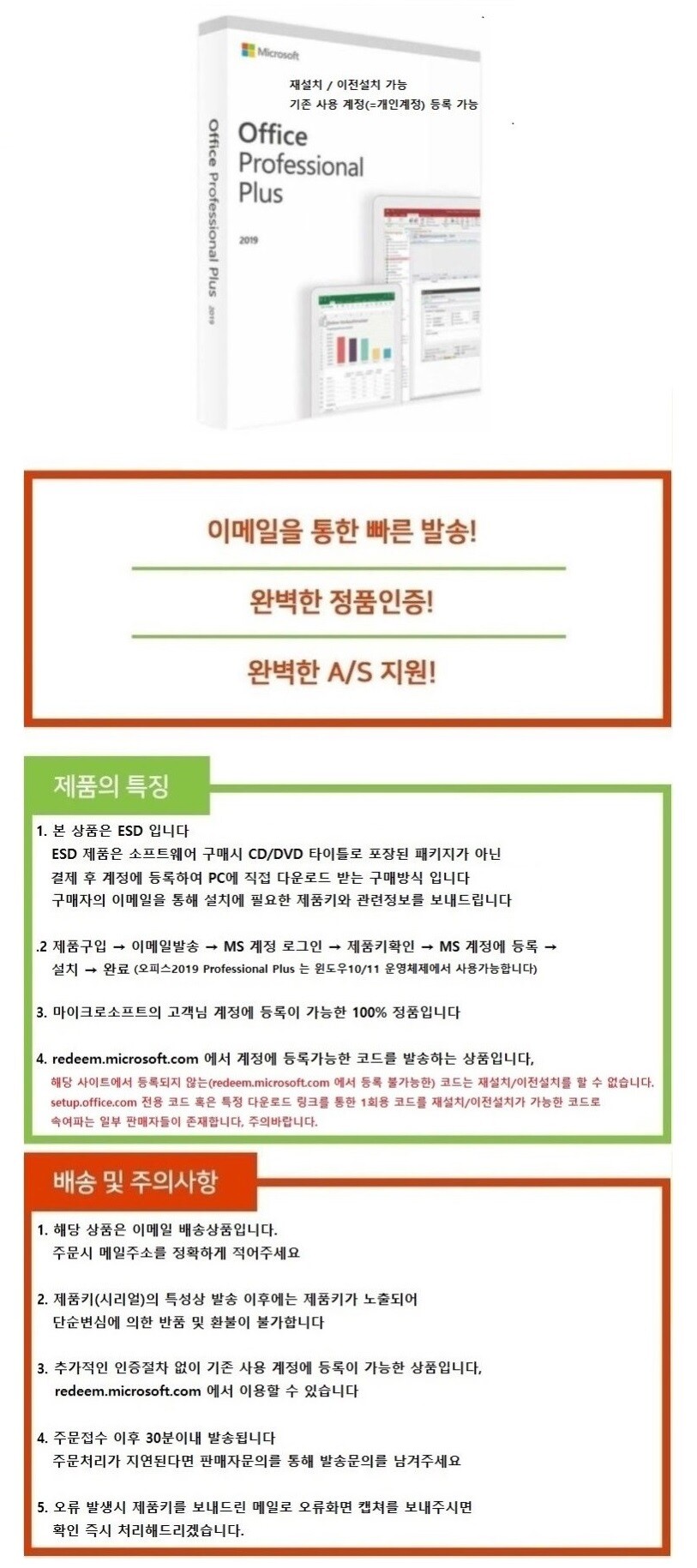 Office2019 ProPlus ESD (윈도우용, 포맷 재인증/이전인증 가능)