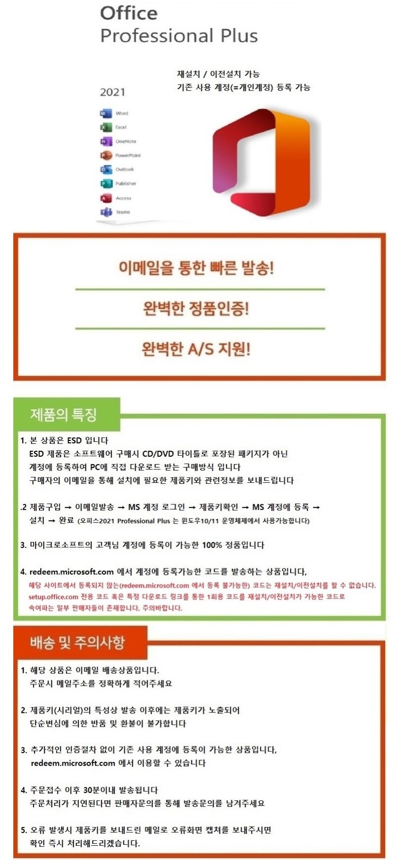Office2021 ProPlus ESD (윈도우용, 포맷 재인증/이전인증 가능)